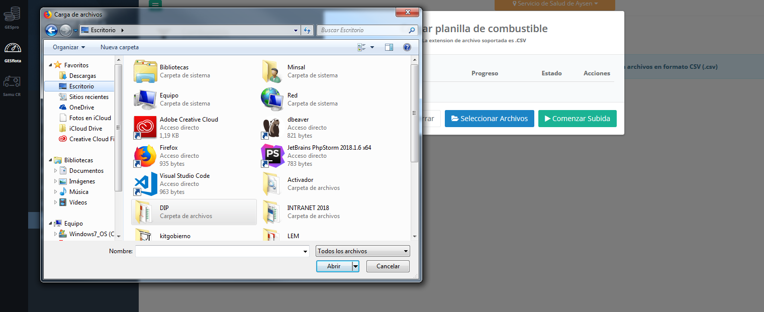 Mensualmente en el área de Mantención del Servicio, se recibe un archivo con las cargas de combustibles que se realizaron en el mes consultado. Este archivo Excel es el que se guarda en formato .CSV y se sube al sistema.