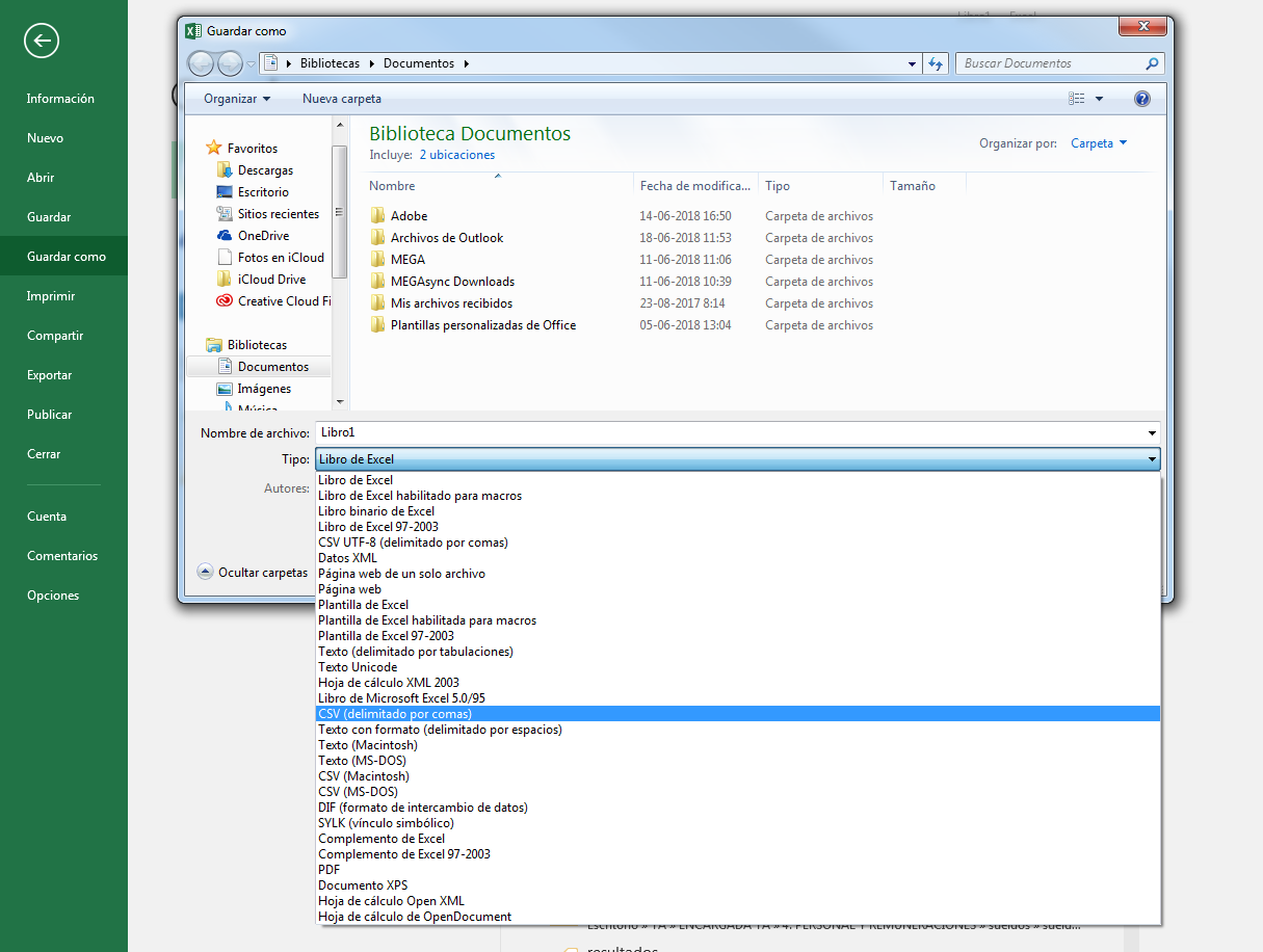 Paso 2: Nos dirigimos a Archivo -> Guardar Como ->Seleccionamos la ruta donde queremos guardar nuestro archivo nuevo-> Seleccionamos el Tipo: CSV (delimitado por comas)-> Guardar