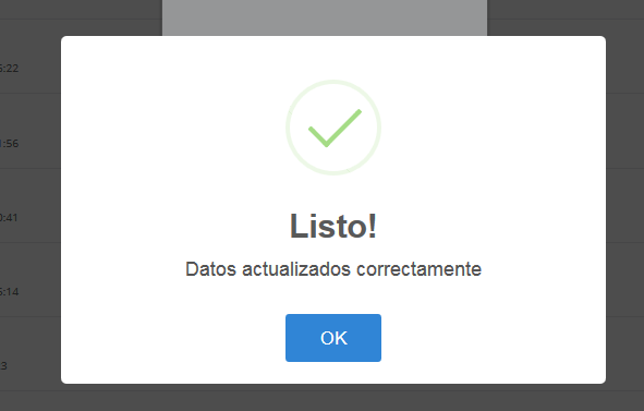 Como hemos mencionado en cada acción siempre se mostrará una confirmación de que fue aprobada por el administrador.