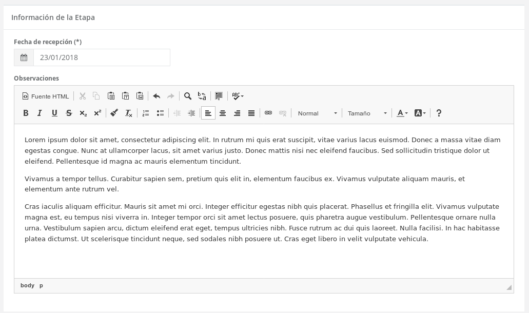 Ya en el interior de la etapa el formulario se presenta de la siguiente manera.