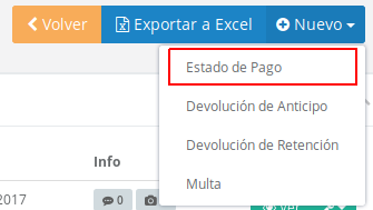 Para ingresar un nuevo estado de pago se debe presionar el botón