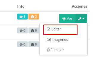 Acciones: Corresponde a funcionalidades adicionales al estado pago como ver toda la información, Editar el estado de pago, adjuntar imágenes o eliminar el registro.