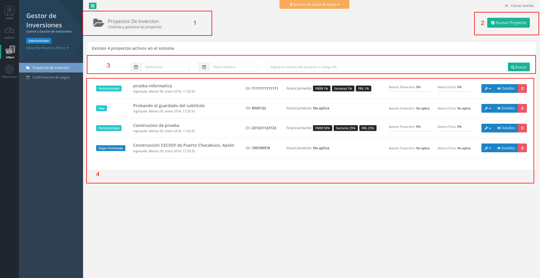 En el listado de proyectos de inversión es posible realizar acciones ademas de ver información relevante dependiendo en la etapa que se encuentre el proyecto en ese minuto.