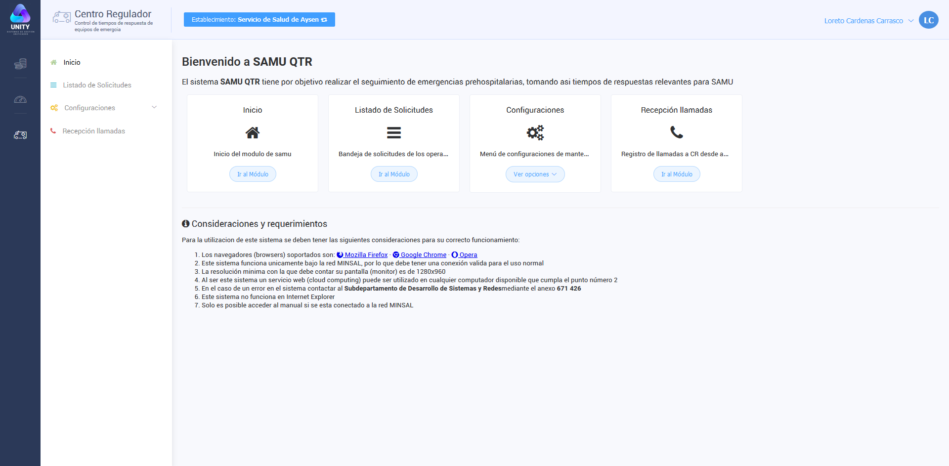 Los sistemas que aparecerán en esta barra dependerán del establecimiento en el que se encuentra trabajando, también a los sistemas que tiene acceso dentro de ese establecimiento, por lo que es normal que dicha barra contenga mas o menos sistemas dependiendo de donde se encuentre trabajando.